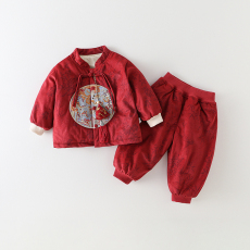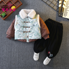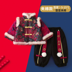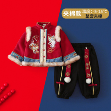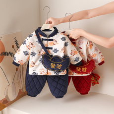 宝宝唐装冬季套装男童拜年服古风小孩一周岁抓周服婴儿童加厚棉衣