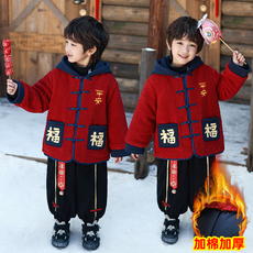 唐装男童拜年服新年套装男宝宝新年服加厚汉服冬季中式棉衣中国风