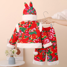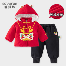 儿童拜年服婴儿分体套装宝宝冬季唐装加厚棉花棉衣服喜庆过年冬装
