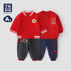 英格贝贝儿童拜年服中国风唐装两件套秋冬棉服套装男宝宝周岁礼服
