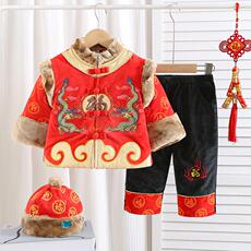 宝宝抓周礼服秋冬季男一周岁过年衣服婴儿唐装加绒加厚棉衣拜年服