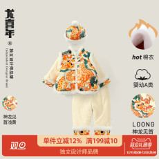 新年拜年唐装中国风小麒麟冬季儿童宝宝加厚套装过年喜庆外出棉服