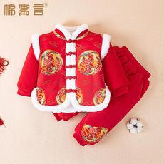 宝宝唐装套装冬季中国风新年装棉衣男女婴儿童1-2-3周岁百日礼服
