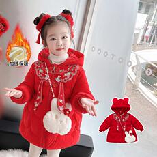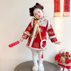 唐装女童拜年服加绒棉衣儿童喜庆过年衣服小女孩旗袍红色新年宝宝