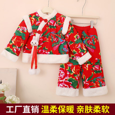 儿童东北大花袄拜年服过年套装棉袄宝宝冬季加绒加厚装唐装男女童