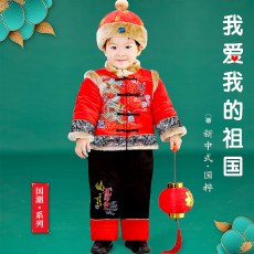 新中式男童拜年服宝宝新年棉袄套装冬季汉服喜庆过年衣服儿童唐装