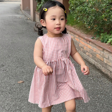 女童连衣裙夏季儿童夏装碎花背心裙子格子无袖纯棉宝宝公主裙薄款