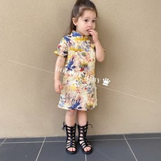 女童旗袍裙子2021夏季小女孩纯棉旗袍碎花中国风复古宝宝连衣裙