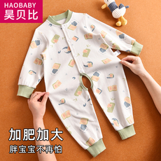 儿童开裆连体衣婴儿长袖纯棉连身衣哈衣胖宝宝睡衣春秋款加肥加宽