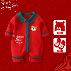 刚出生婴儿宝宝满月宴礼物实用衣服红色男孩女童百天连体衣秋冬季