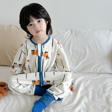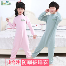 春秋沐雨儿童连体睡衣防踢被纯棉中领护脖颈男女童宝宝扩胸哈衣