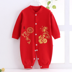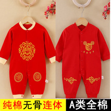 春秋婴儿大红色衣服新年装满月连体衣服长袖男女宝宝爬服哈衣纯棉