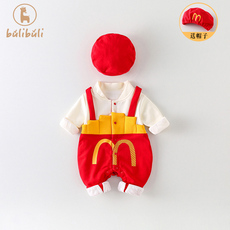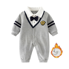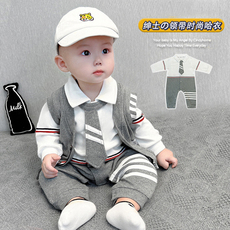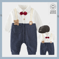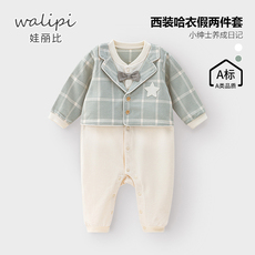 娃丽比婴儿连体衣春秋百天男宝宝哈衣爬服超洋气婴儿衣服周岁礼服