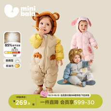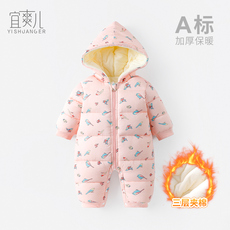 婴儿羽绒服连体衣冬季加厚宝宝外出衣服保暖秋冬装白鸭绒哈衣爬服