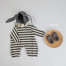 现货韩国进口婴儿爱心条纹家居爬服宝宝春秋款韩系纯棉休闲连体衣