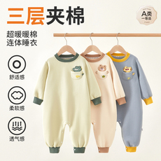 有吉小贝婴儿夹棉连体衣秋冬款衣服秋衣套装宝宝秋装婴幼儿保暖衣
