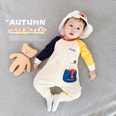 婴儿连体衣早秋长袖纯棉无骨爬服哈衣男女宝宝春秋款柔软包屁衣