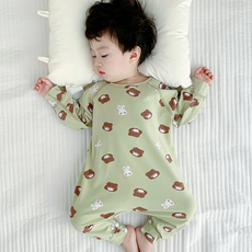 宝宝睡衣秋季薄款莫代尔连体长袖防踢婴儿秋款家居服男女童空调服