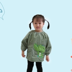 儿童防水围裙小孩加长画画衣家用男女童美术绘画防脏宝宝长袖罩衣