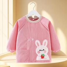 儿童罩衣秋冬长袖灯芯绒宝宝吃饭防水围兜幼儿园防脏围裙反穿护衣