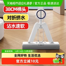 宝家洁吸水拖把海绵头对折式拖布免手洗家用胶棉一拖净懒人挤水托