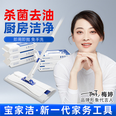 宝家洁夹布拖把厨房拖地专用去油抹布湿巾夹板拖布静电除尘平板拖