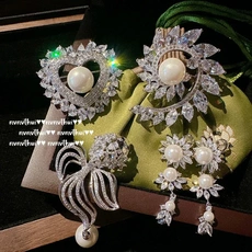 人鱼泪 金鱼宝石珍珠胸针 大溪地 深海贝珠漩涡锆石胸针 花朵耳环