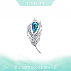 leqiyuan羽毛胸针镶嵌进口澳地利水晶蓝色宝石轻奢精致百搭礼物