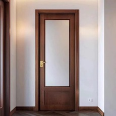 实木卧室门定制中古风室内门胡桃色玻璃门复合烤漆门复古实木门