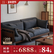 璞木新中式黑胡桃木实木红木沙发组合三人位双人宋式美学家具客厅