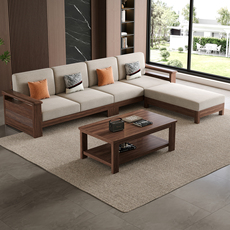 新中式胡桃木实木沙发组合冬夏两用现代大小户型客厅转角储物沙发
