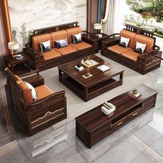 新中式乌金木实木沙发组合大小户型客厅冬夏两用别墅现代储物家具