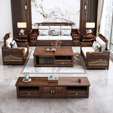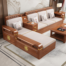 新中式胡桃木实木沙发组合现代简约客厅大小户型冬夏两用储物沙发