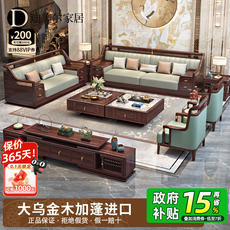 政府补贴乌金木实木沙发新中式别墅高端家具家用客厅真皮沙发组合