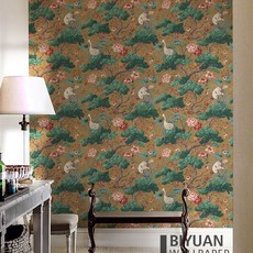 中式花鸟墙纸壁布电视背景墙壁纸客厅卧室美式墙布餐厅定制壁画