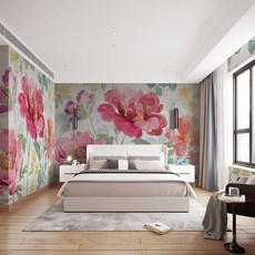 花鸟田园欧式花朵轻奢墙布客厅沙发电视背景墙壁纸美式法式壁画