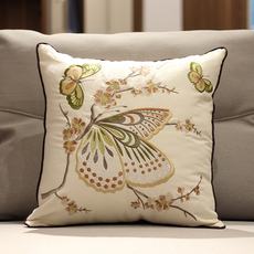 高档绣花欧式米色抱枕立体图案可拆洗客厅沙发靠枕家居床头靠垫