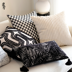 栗笙诧寂风中古客厅沙发抱枕黑白靠枕民宿高级感靠垫样板间枕套