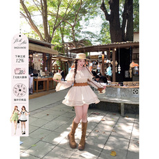 弥爱原创《朝雾鸢尾》宫廷复古蕾丝荷叶边灯笼袖高腰大摆连衣裙新