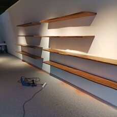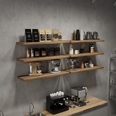 墙上实木搁板原木层板厨房墙面一字隔板墙上置物架搁架壁挂书架