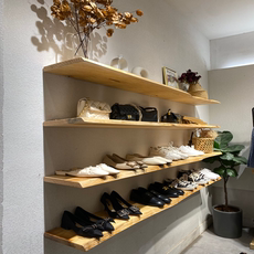 隔板白色服装店放鞋架放包置物架墙上鞋店实木一字壁挂展示架创意