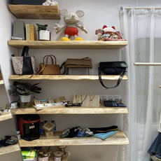 置物架墙上复古实木一字隔板层板壁挂书架背景墙鞋包货品展示架