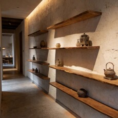 实木自然山丘置物架墙上悬空隔板入门玄关侘寂风收纳架木板装饰架