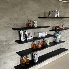 侘寂风墙上壁挂新款置物架一字隔板书架民宿层板碳化黑原木自然边