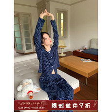 芬腾女士睡衣春秋纯棉长袖开衫套装新款宽松休闲加大码全棉家居服