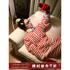 JoyceBra 韩版撞色德绒睡衣套装女秋冬柔软亲肤休闲可外穿家居服