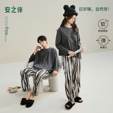 安之伴【巨柔软】春秋款情侣睡衣女纯棉长袖时尚男士家居服可外穿