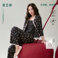 安之伴【巨柔软】睡衣女款春秋季带胸垫吊带开衫秋冬三件套家居服