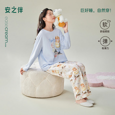 安之伴【巨柔软】纯棉睡衣女春秋新款长袖时尚可外穿家居服大码