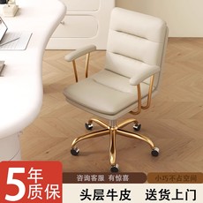 法式轻奢真皮电脑椅舒适家用旋转升降女生卧室化妆椅书房办公座椅